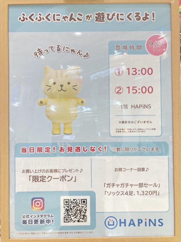 9月21日(日)、HAPiNSフジグラン徳島北島店に